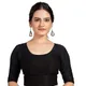 Blue Round Neck Dobby Cotton Lycra Stretchable Elbow Sleeve Readymade Saree..More